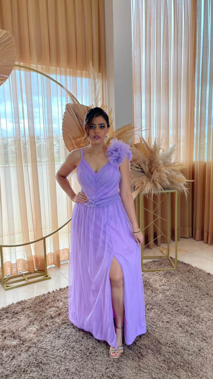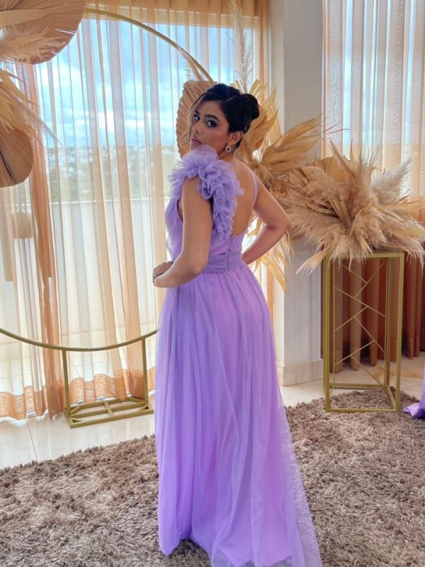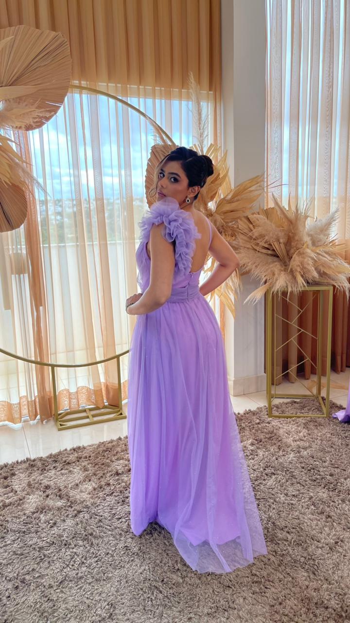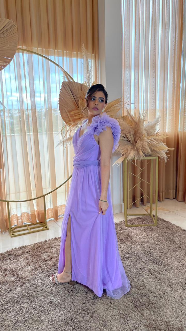 Glitter Lavanda Plumas Ombro